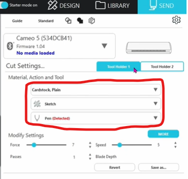 Vérifier que la tête d’outil du stylo est bien insérer, ainsi que le matériau. Puis, cliquez sur ‘SEND’.