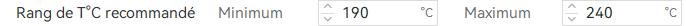 7. A. Dans “Rang de T°C recommandé“, indiquez les valeurs inscrites sur la bobine dans “Print temp” ou “PT”