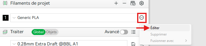 NB : Pour la marque de filament, choisir “Generic” puis le type de filament utilisé (PLA, PETG, etc…). Pour la couleur, il vous suffit de regarder votre bobine.