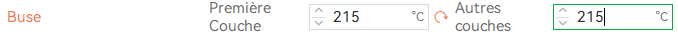 Print temp : 200-230°C donc dans “Rang de T°C recommandé“ :