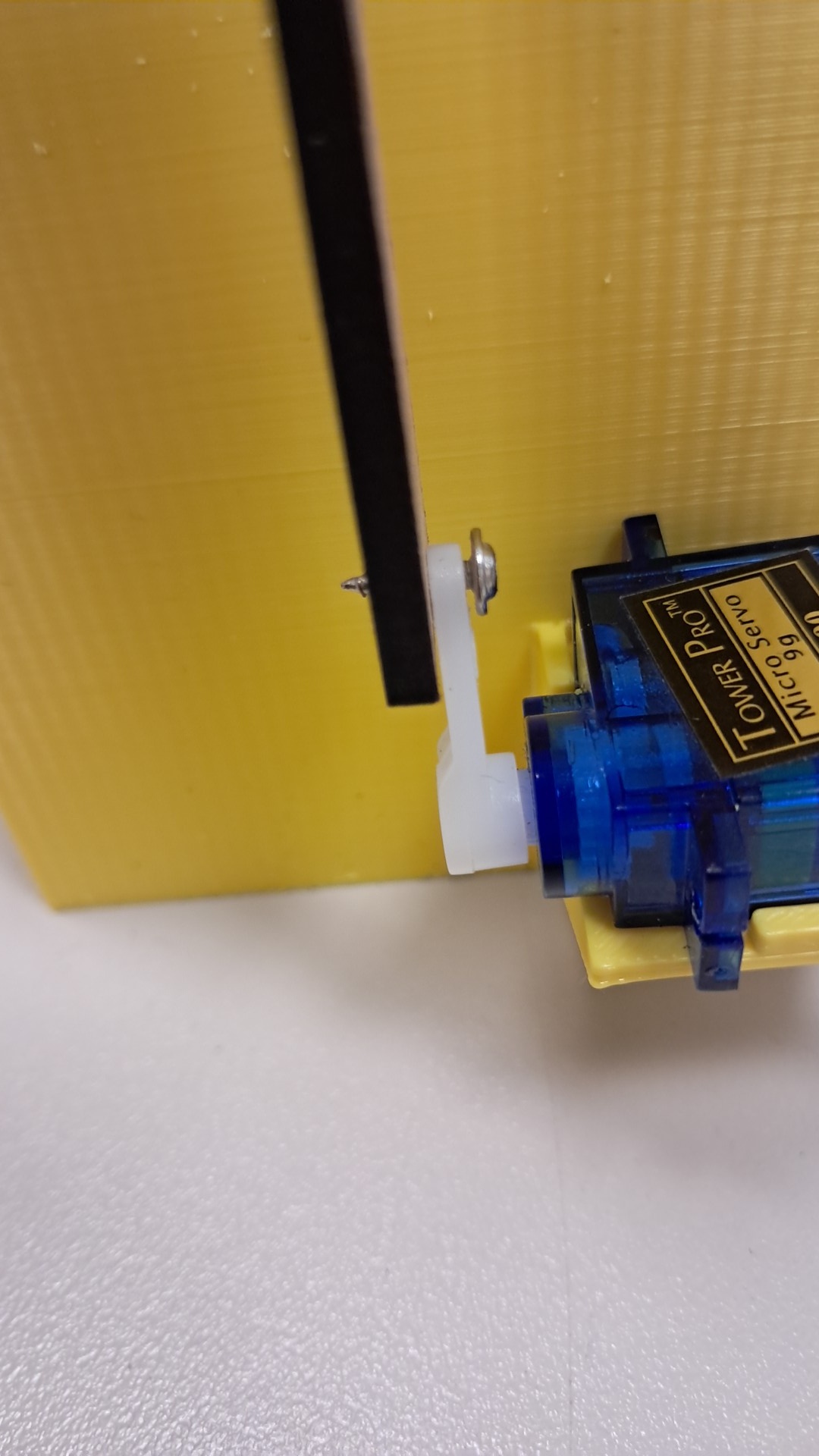 Une fois tous les composants en place, il ne reste plus qu’à clipser le palonnier sur le servomoteur, comme indiqué ci-dessous :