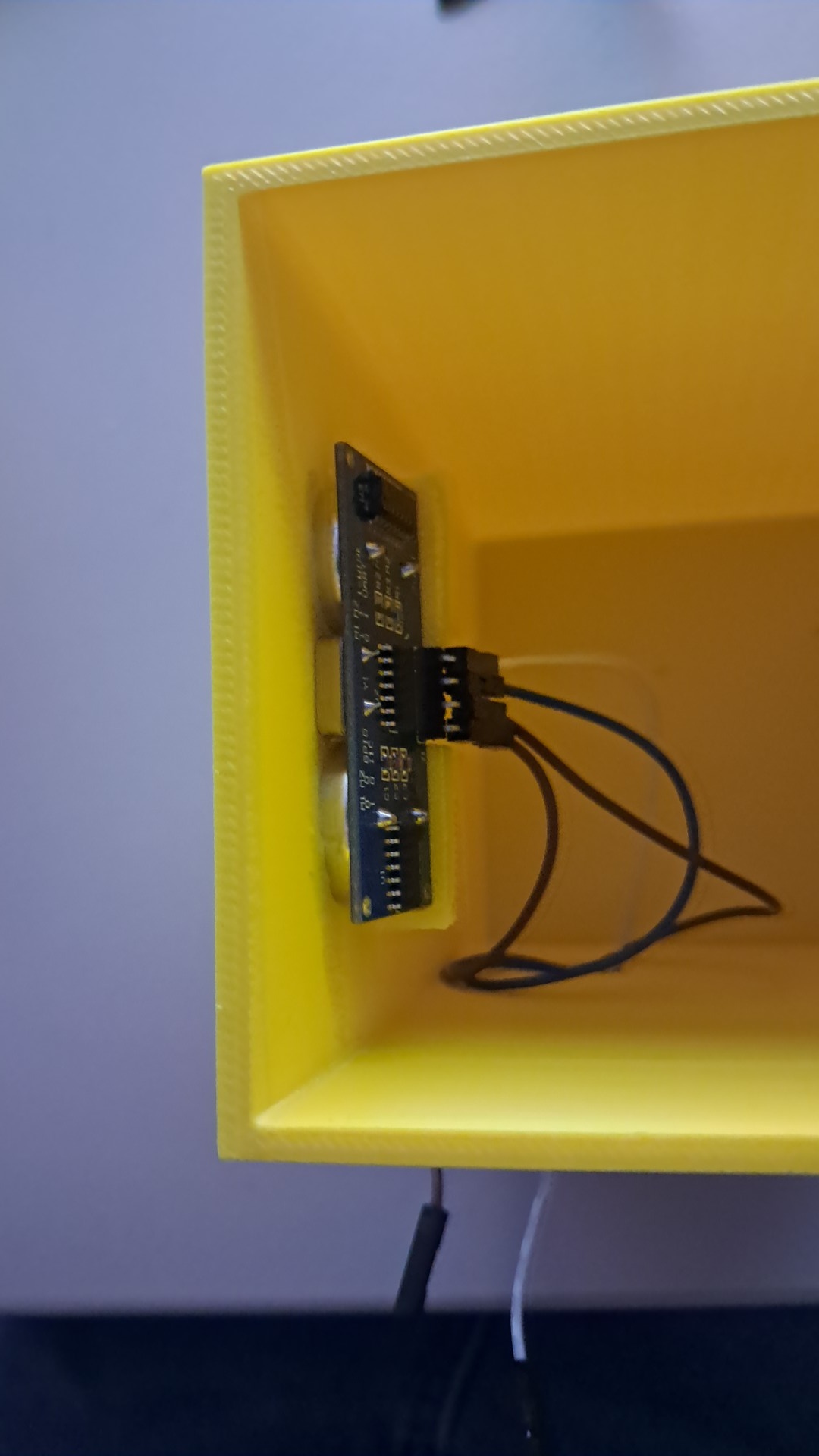 Ensuite, vous devez faire passer les fils par le petit trou situé en bas à droite du capteur à ultrasons, comme indiqué ci-dessous :