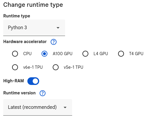 batch_size=64- avec A100 (12€ les 100 compute units, 70 = ~5H sur Google Colab) on a 40G de RAM ou 80G de RAM (extra RAM)